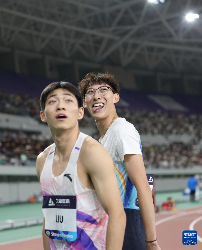 5月3日,中国选手徐卓一(右)、刘俊茜在男子110米栏比赛后。他们分别获得第四名和第五名。