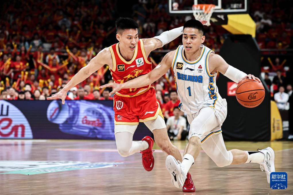 5月7日,北京北汽队球员陈盈骏(右)在比赛中突破。