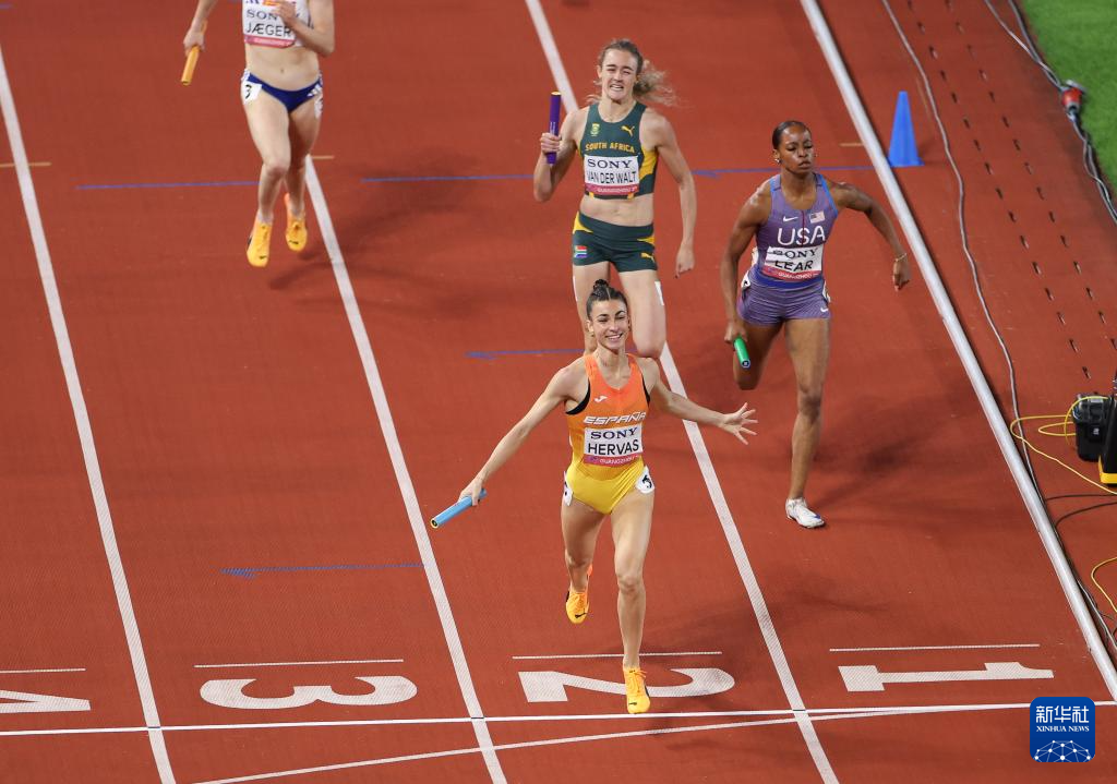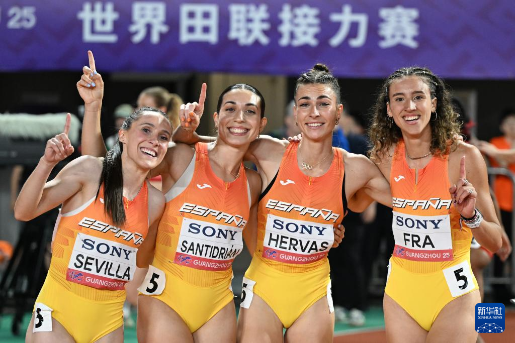当日,在广州天河体育中心举行的2025年世界田联接力赛女子4x400米接力决赛中,西班牙队以3分24秒13的成绩获得冠军。