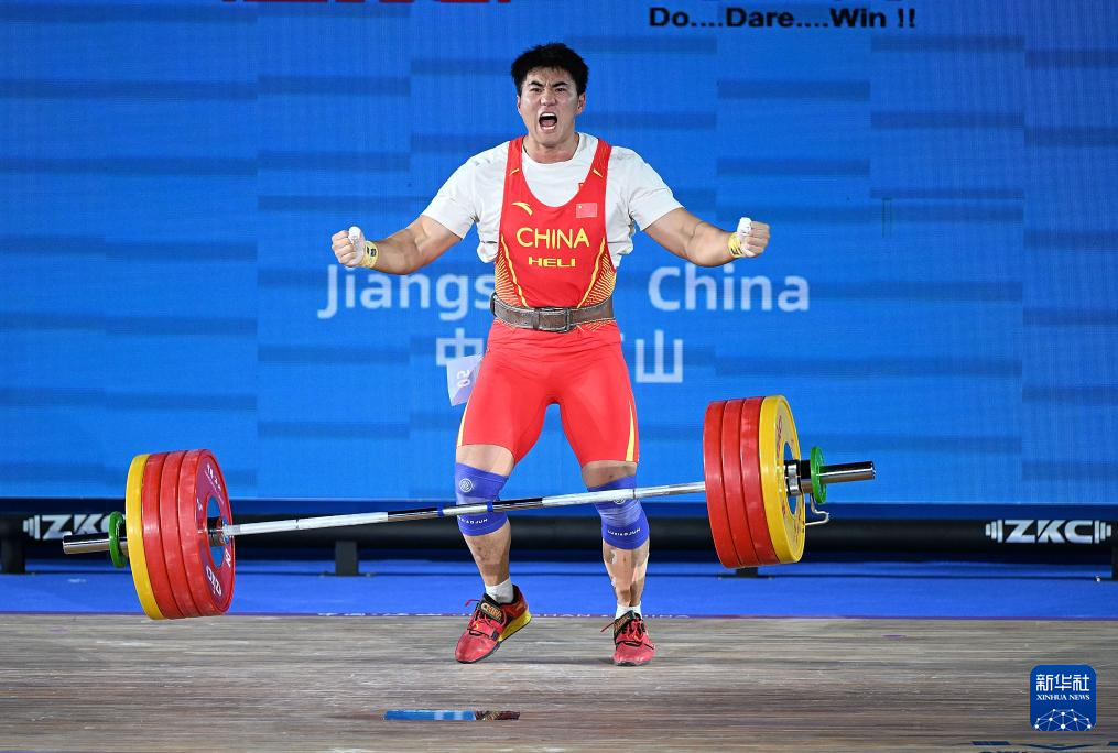 5月13日,中国选手钱飞翔在挺举比赛中。最终,他获得抓举、挺举两项季军和总成绩第四名。