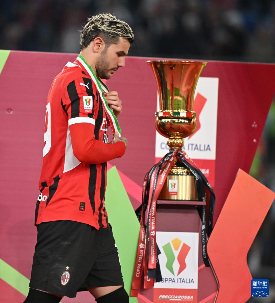 5月14日,AC米兰队球员特奥·赫尔南德斯在颁奖仪式上。