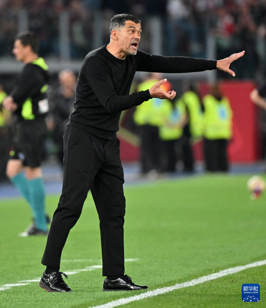 5月14日,AC米兰队主教练孔塞桑在场边指挥。