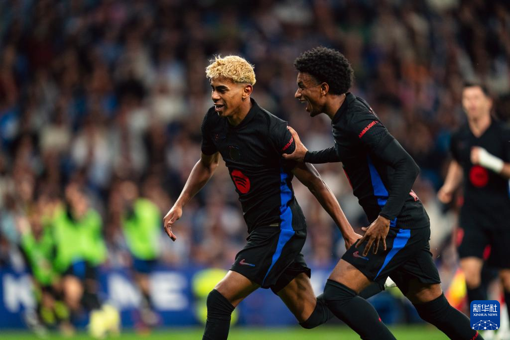 5月15日,巴塞罗那队球员亚马尔(左二)在比赛中。