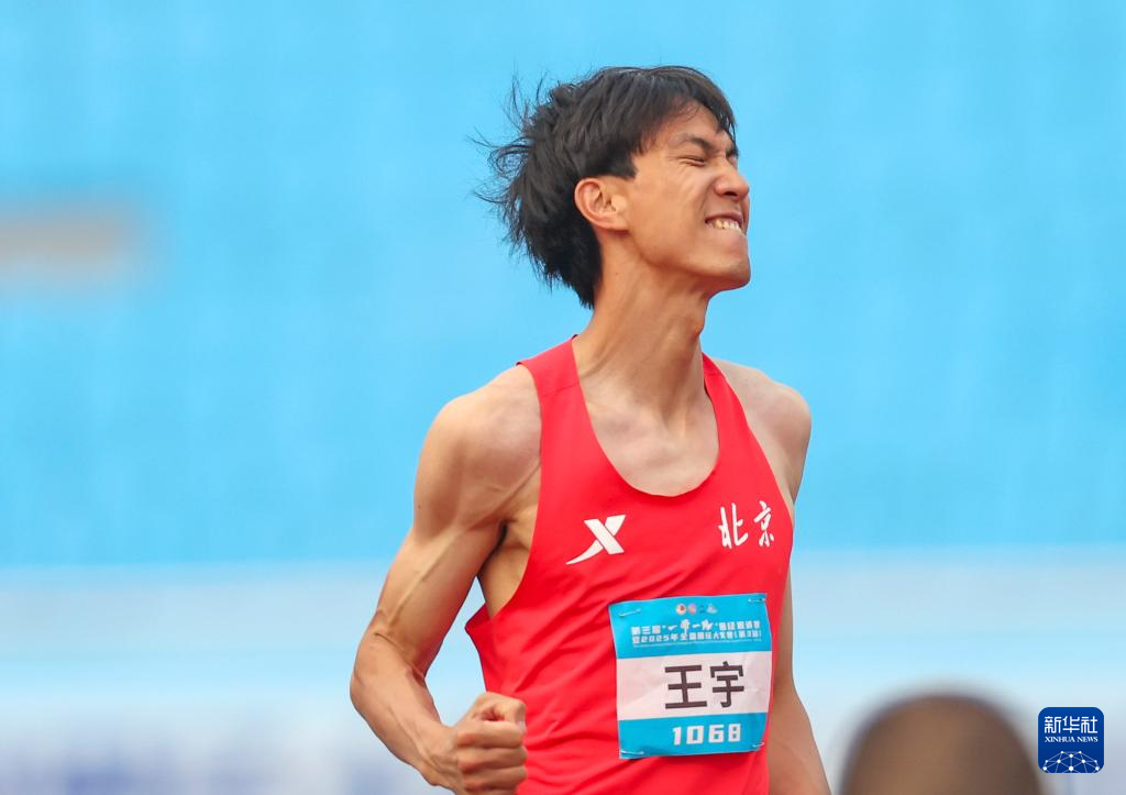 5月15日,北京队选手王宇在试跳成功后庆祝。最终,他位列第五。