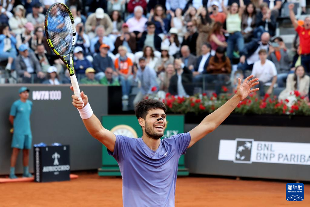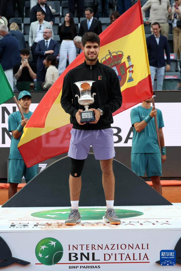 当日,在意大利罗马举行的ATP1000网球罗马站男单决赛中,西班牙选手阿尔卡拉斯2比0战胜意大利选手辛纳,夺得冠军。