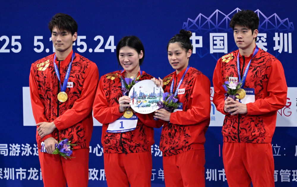 新华社广州5月20日电(记者赵紫羽、王浩明)全国游泳冠军赛20日决出五枚金牌,潘展乐所在的浙江队获得男女4X100米混合泳接力冠军,这是他本届赛事收获的第四金。覃海洋摘得男子50米蛙泳金牌,李冰洁刷新个人最好成绩夺得女子200米自由泳冠军。
