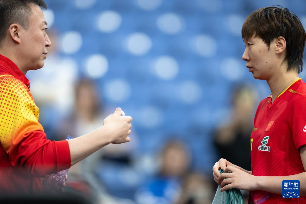 5月20日,王曼昱(右)接受教练马琳指导。