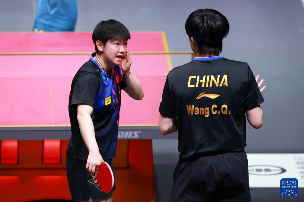 5月22日,王楚钦/孙颖莎(右)在比赛中沟通战术。