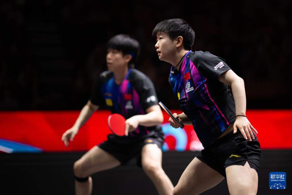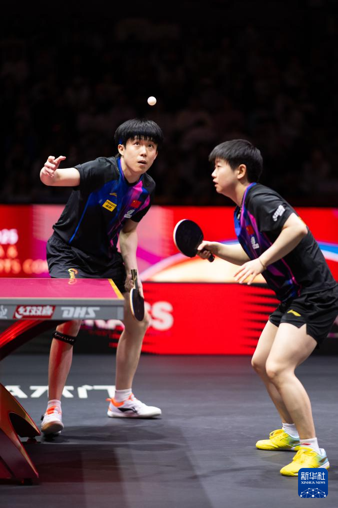 5月22日,王楚钦/孙颖莎(左)在比赛中。