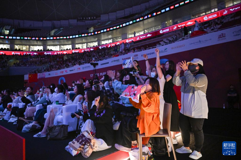 5月22日,观众在现场为王楚钦/孙颖莎加油助威。