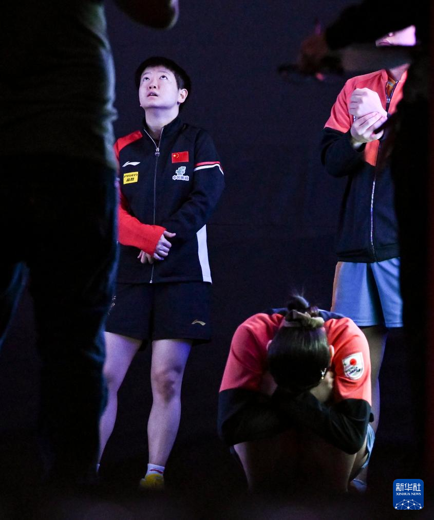 5月22日,孙颖莎(左)和张本美和在比赛前。