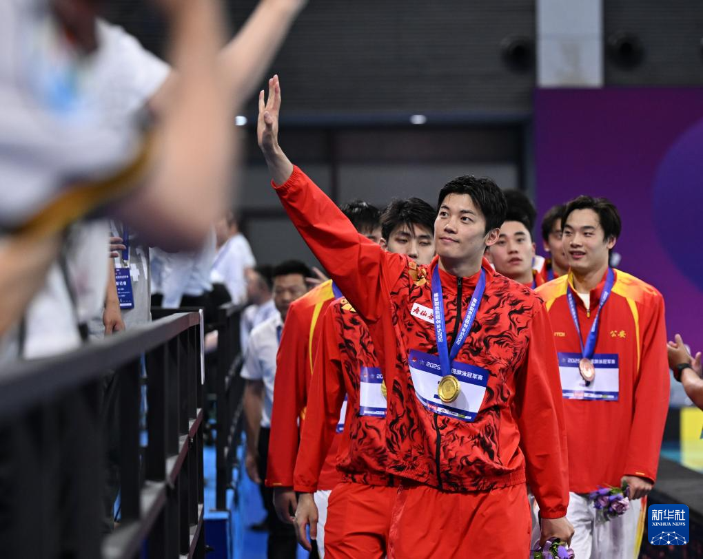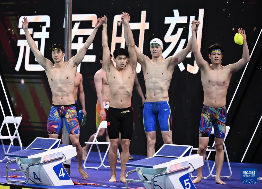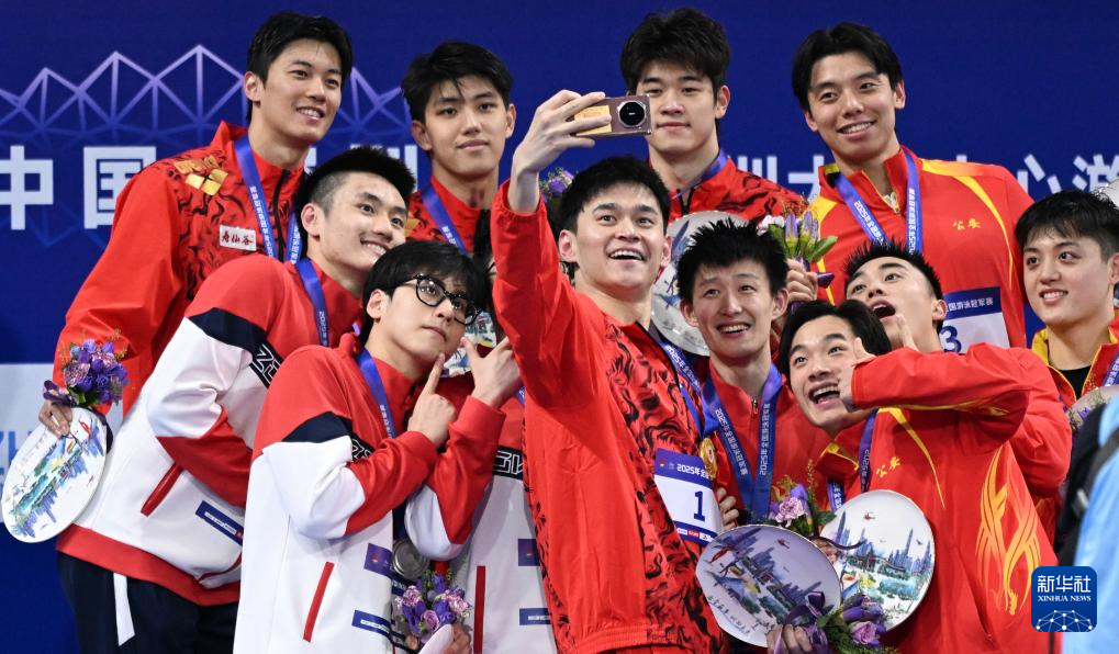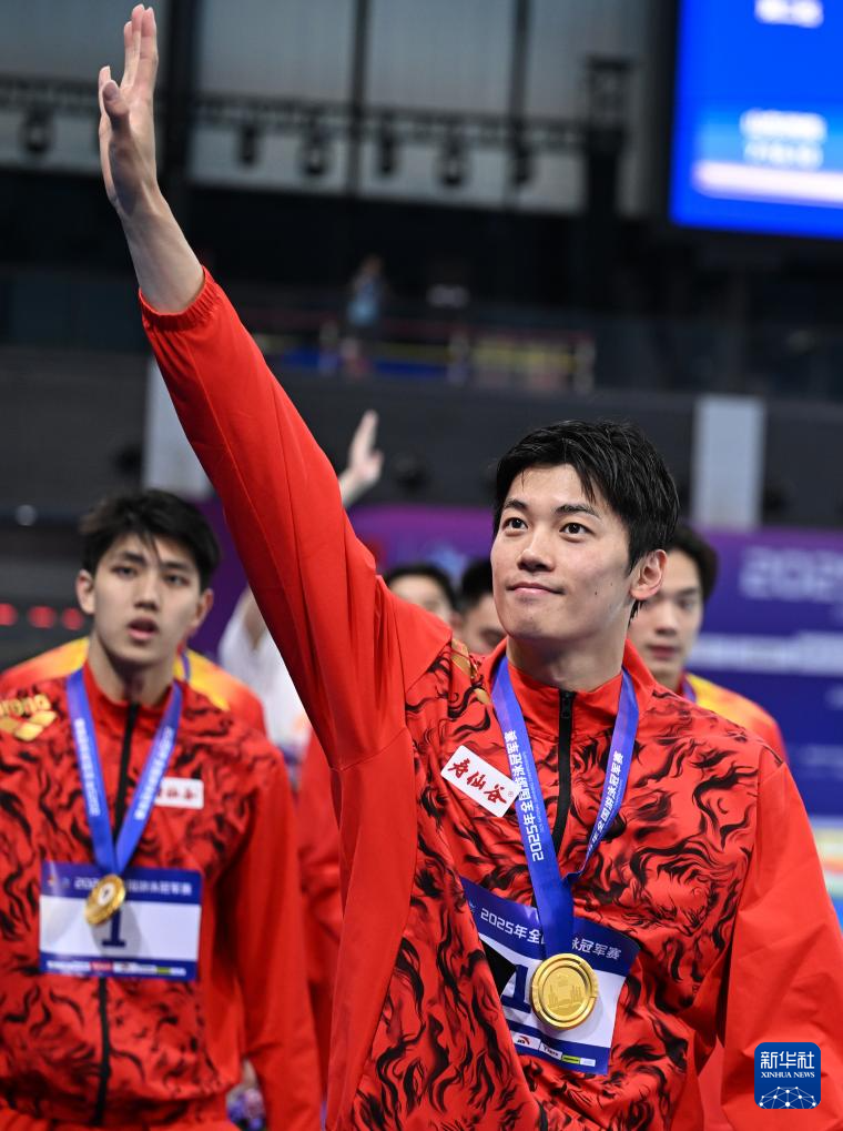 当日,在广东深圳举行的2025年全国游泳冠军赛男子4x200米自由泳接力决赛中,由汪顺、费立纬、孙杨、潘展乐组成的浙江寿仙谷队获得冠军。