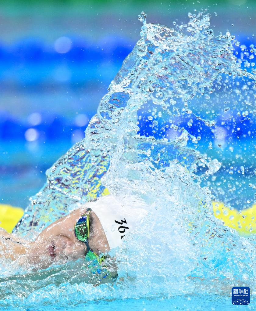 5月22日,浙江寿仙谷队第四棒选手潘展乐在比赛中。