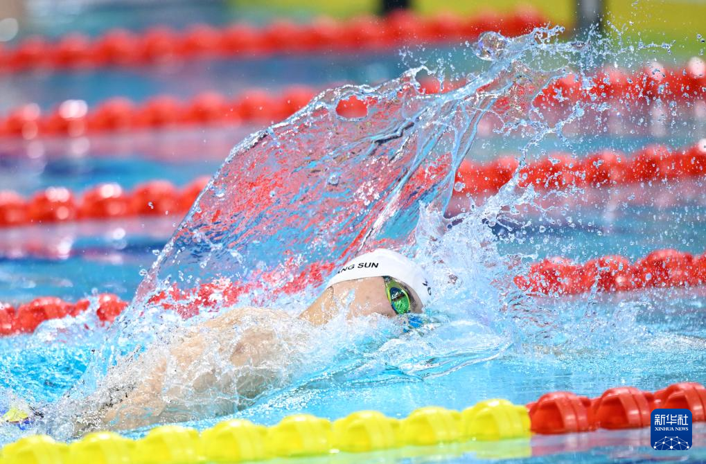 5月22日,浙江寿仙谷队第三棒选手孙杨在比赛中。
