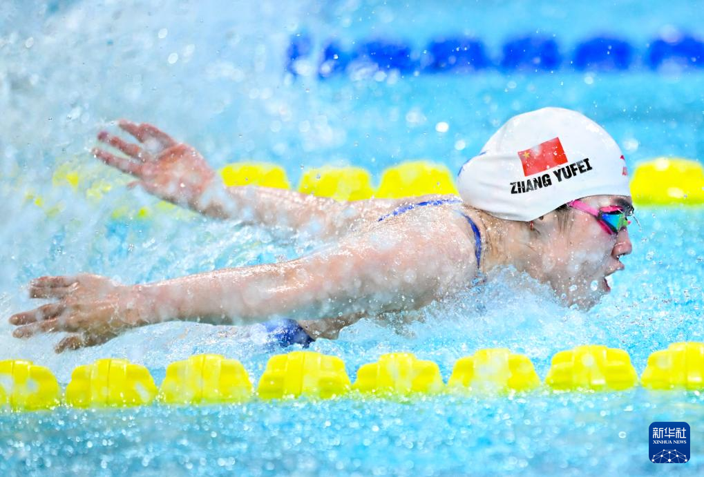 5月22日,张雨霏头戴印有蝴蝶图案的泳帽参赛。