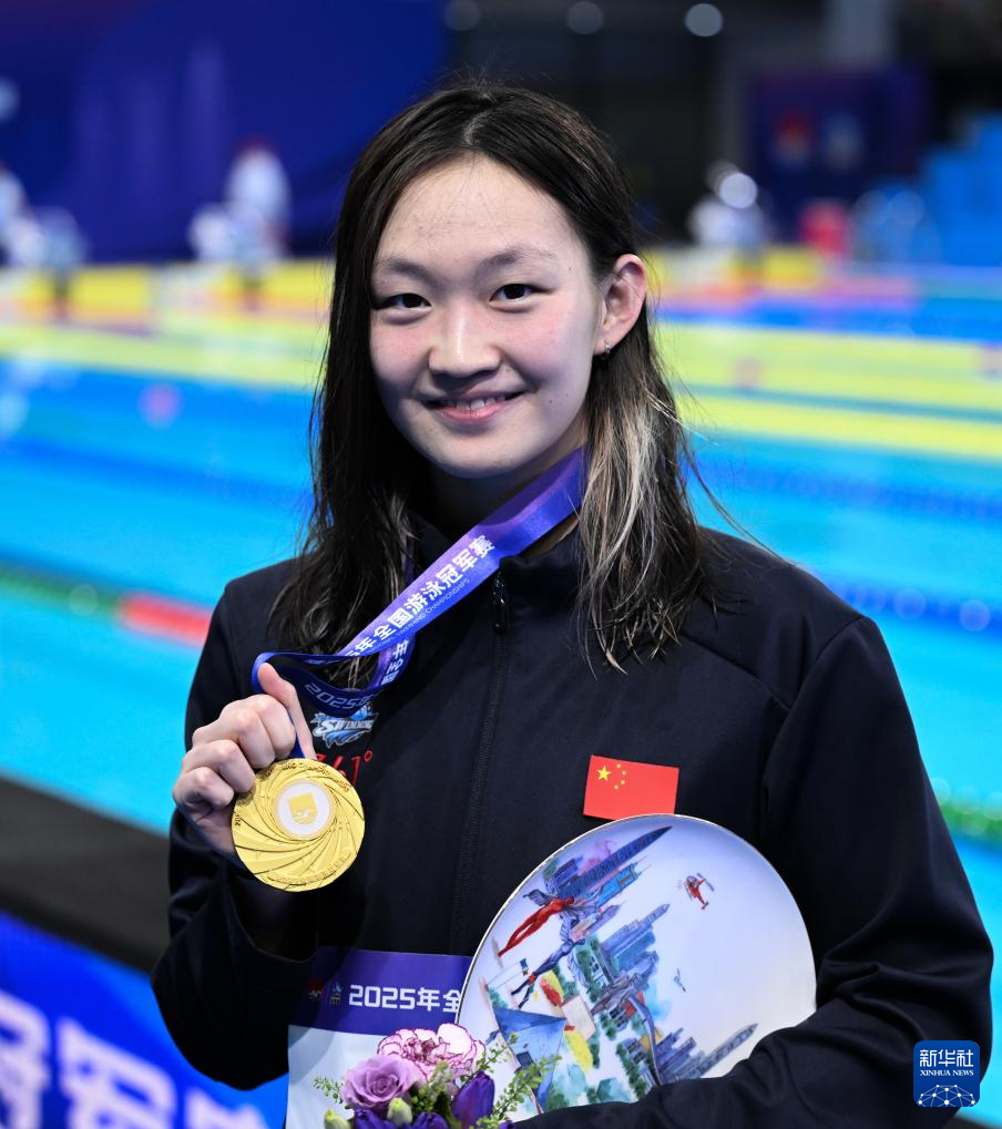 当日,在广东深圳举行的2025年全国游泳冠军赛女子800米自由泳决赛中,河北泰华队选手李冰洁获得冠军。