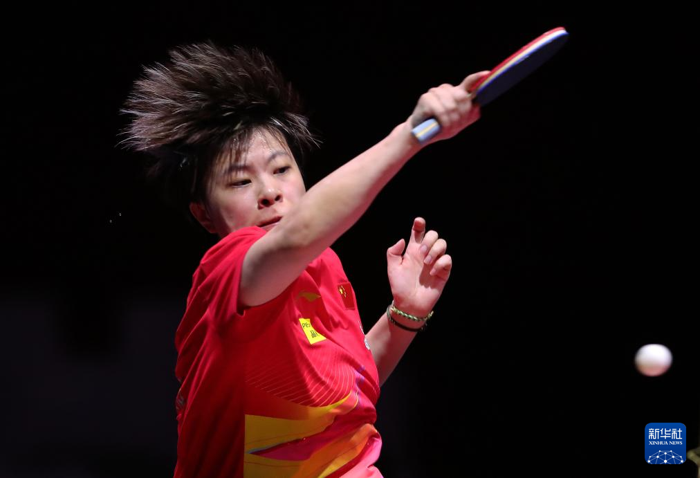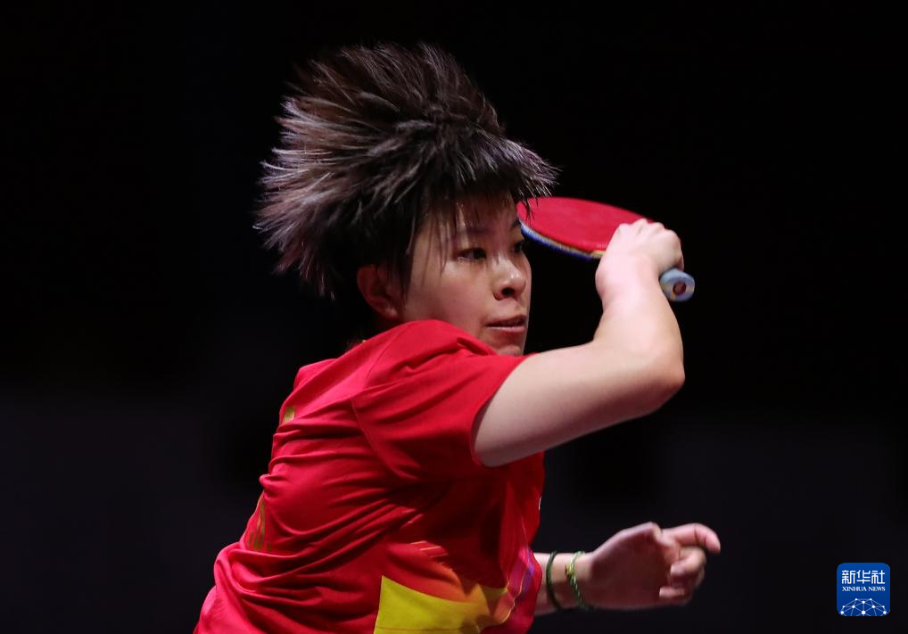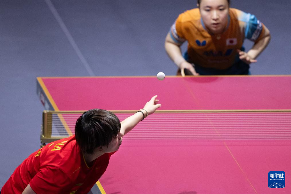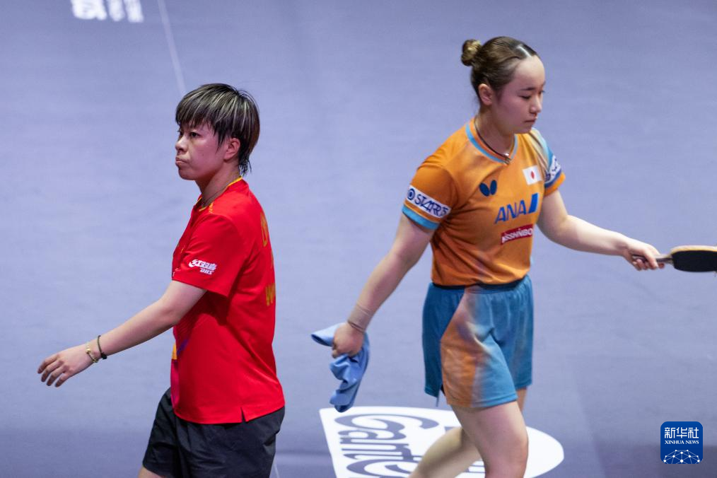 5月23日,王艺迪(左)和伊藤美诚在比赛中。