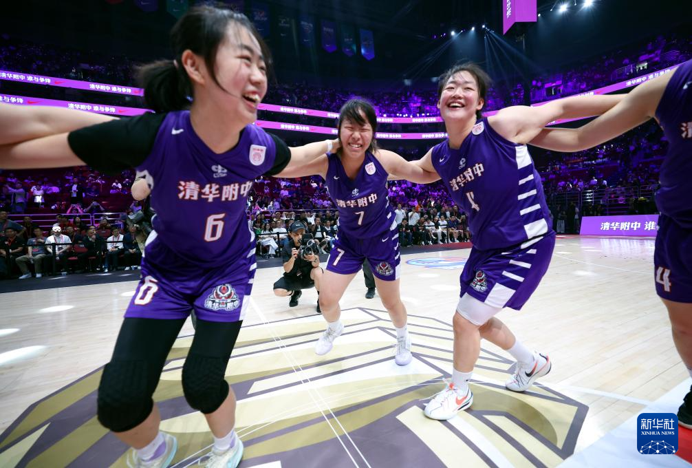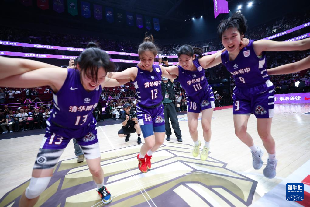 5月25日,清华大学附属中学队球员庆祝夺冠。