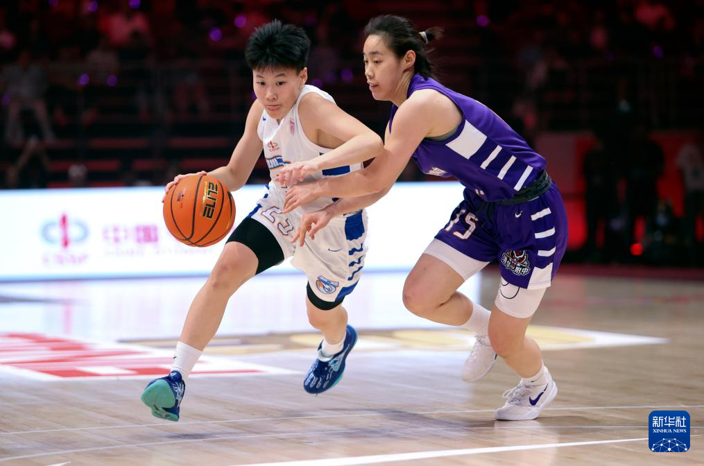 5月25日,清华大学附属中学队球员董一诺(右)在比赛中突破。