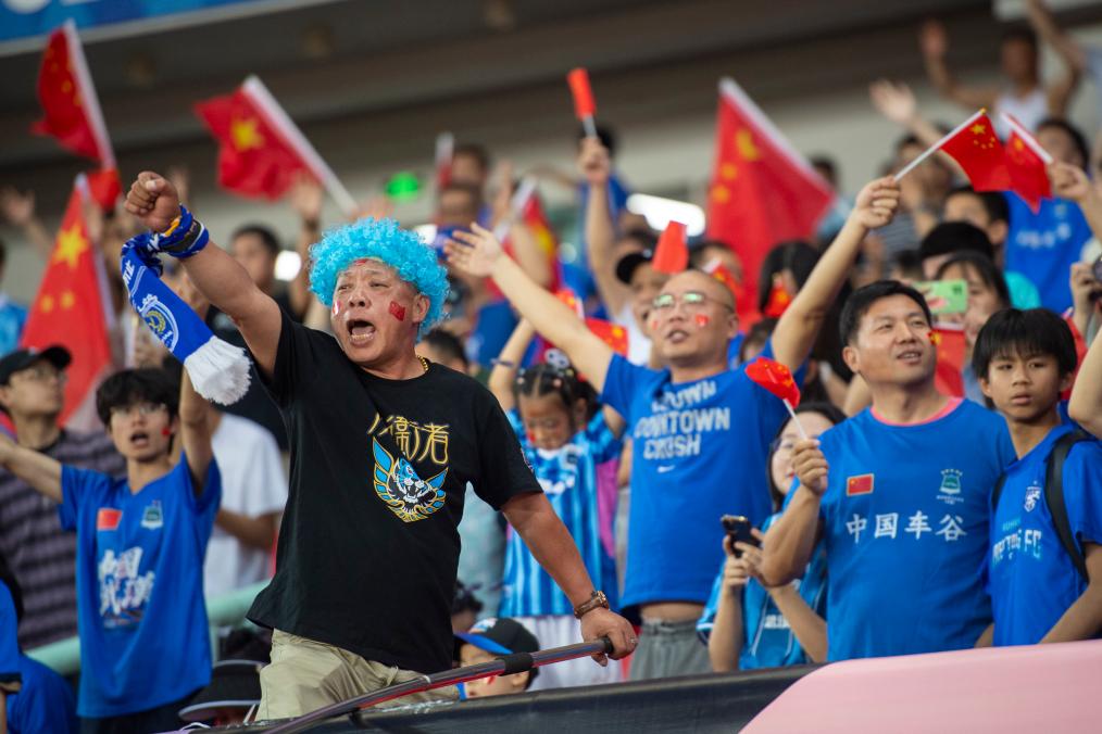 武汉人,爱球,也懂球。这场将近三个小时的鏖战,球迷们始终精准地把控着节奏,为武汉女足加油助威。看台上,球迷们打出“汉女 悍将”的标语,点球大战开始前,全场大合唱《相信自己》。