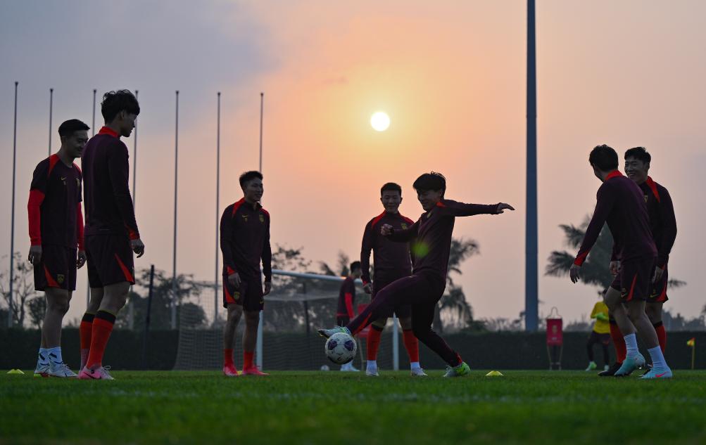 1月9日,中国队球员在训练中,备战将在3月进行的2026美加墨世界杯亚洲区预选赛18强赛。新华社记者 郭程 摄