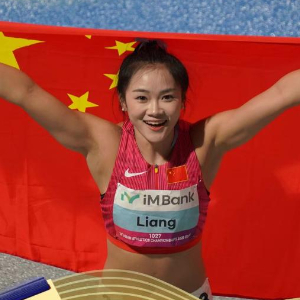 梁小静夺冠后庆祝。图源:中国田径队