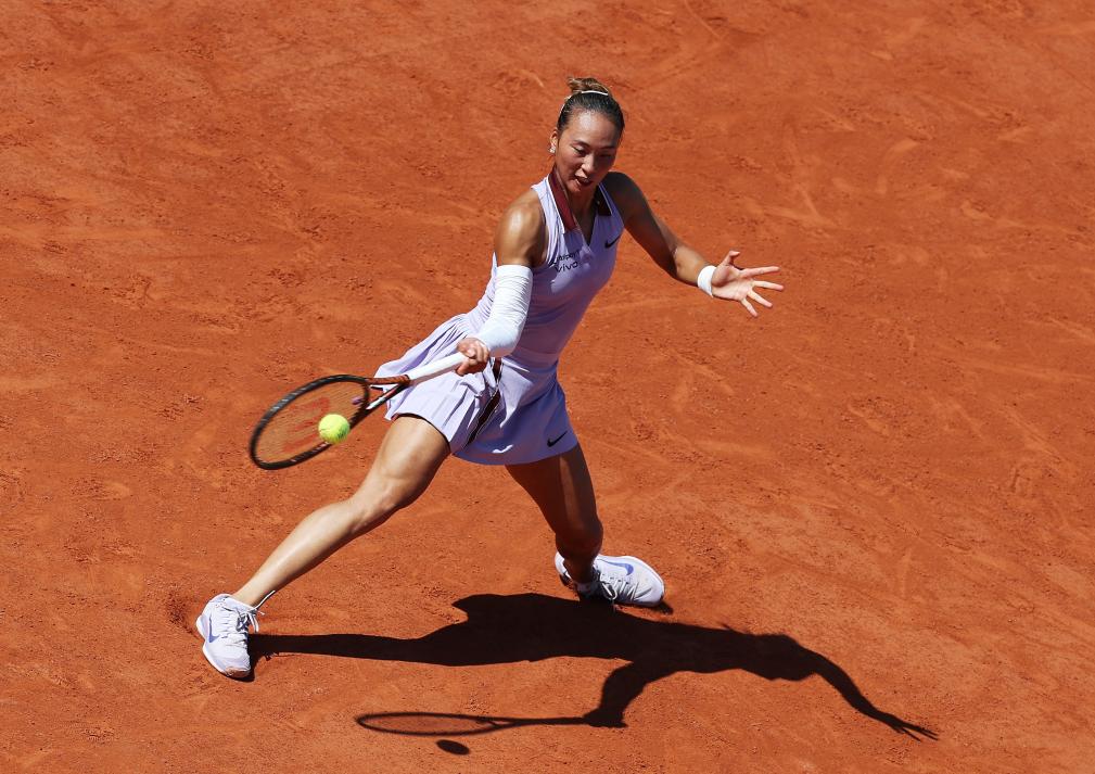 5月30日,郑钦文在比赛中回球。新华社记者 高静 摄