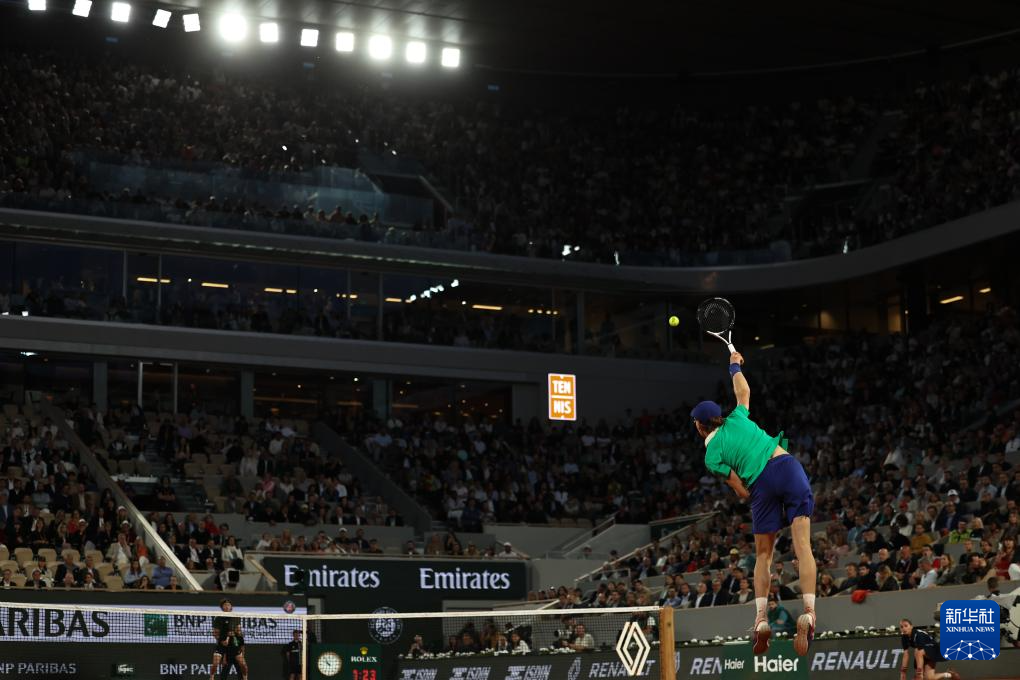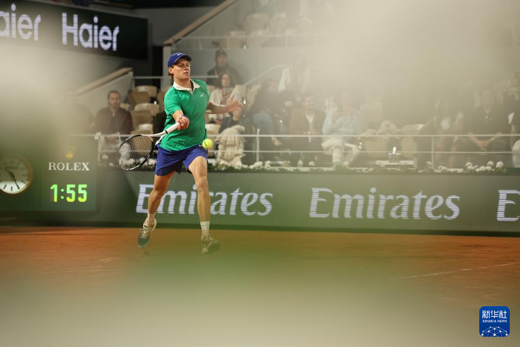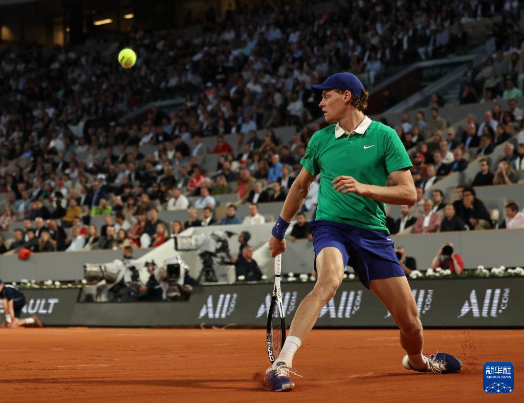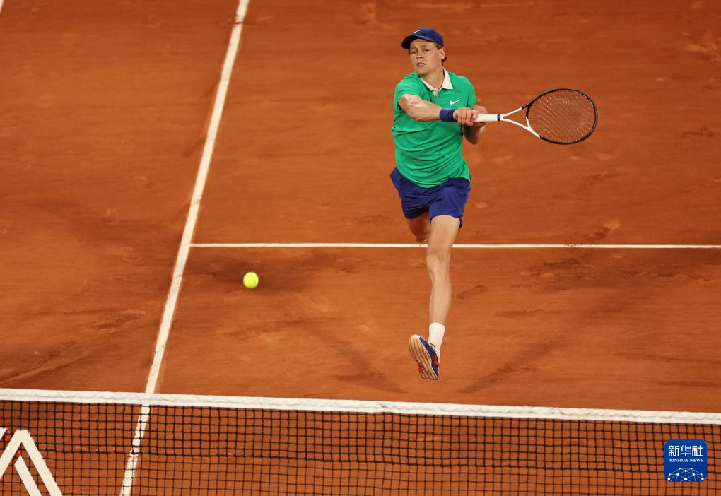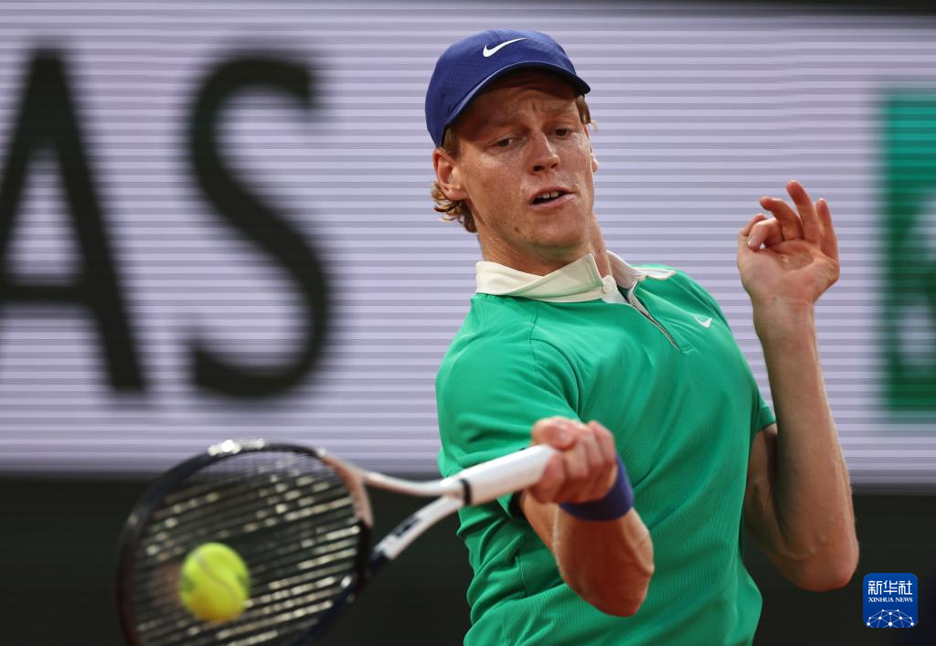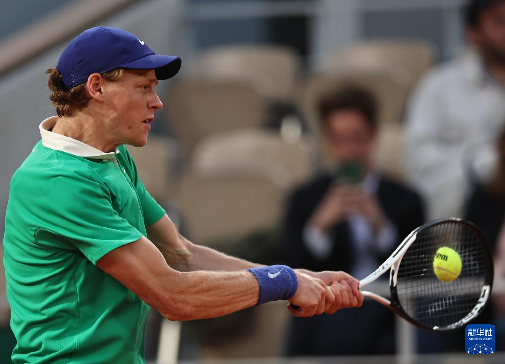6月2日,辛纳在比赛中回球。
