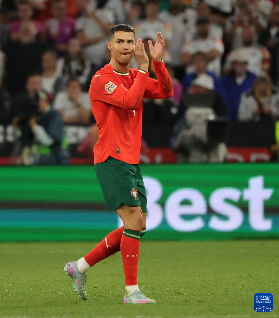 6月4日,葡萄牙队球员克·罗纳尔多被替换下场时向球迷致意。