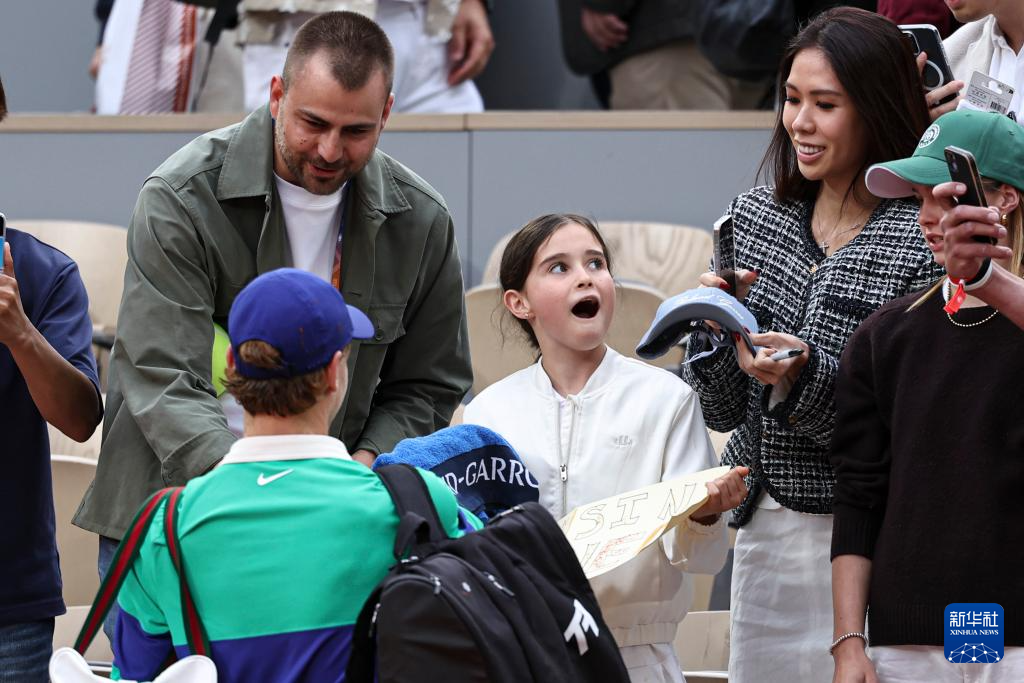 6月4日,一名小观众在收到辛纳的毛巾后欢呼。