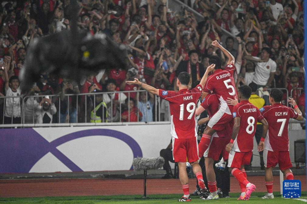 6月5日,印度尼西亚队球员在赛后庆祝胜利。