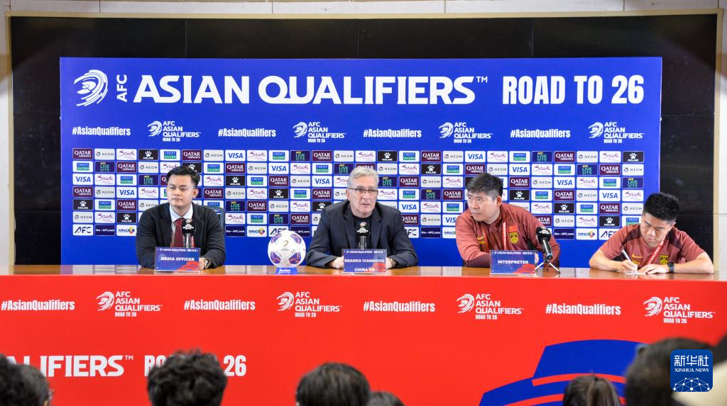 6月5日,中国队主教练伊万科维奇(左二)在赛后发布会上。