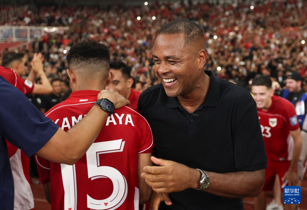 6月5日,印度尼西亚队主教练克鲁伊维特(左)在赛后庆祝。