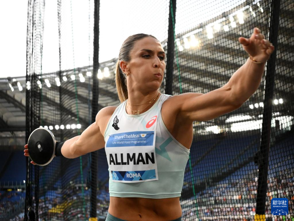 6月6日,美国选手奥尔曼在女子铁饼比赛中。她以69米21的成绩获得冠军。