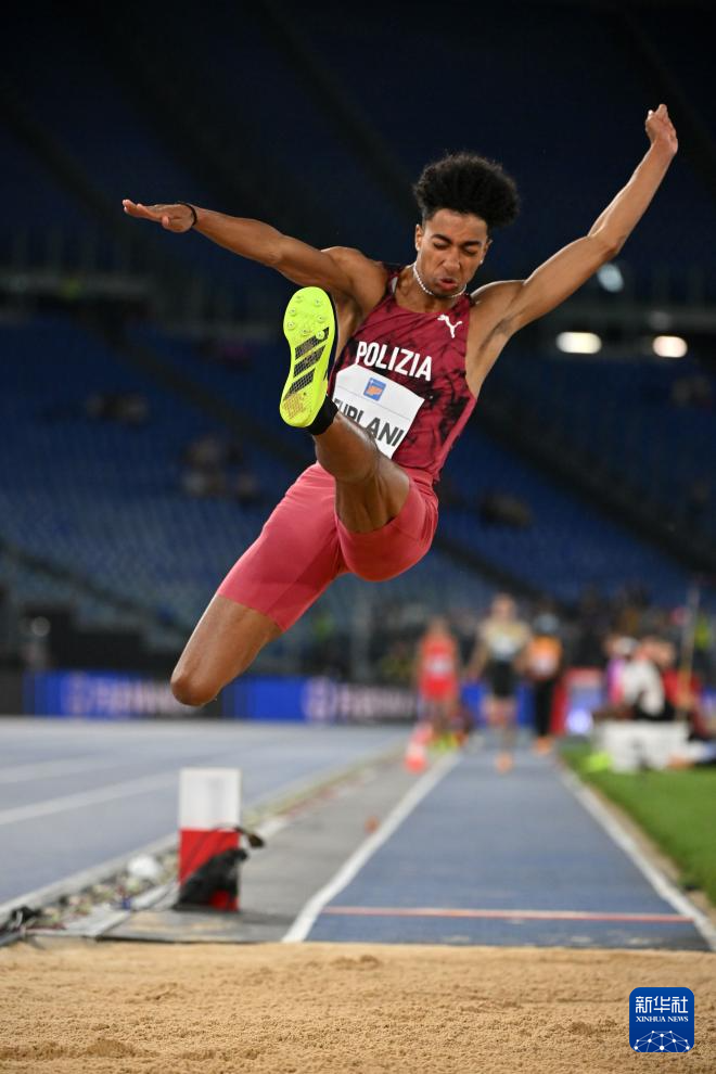 6月6日,意大利选手富拉尼在男子跳远比赛中。他以8米13的成绩获得亚军。