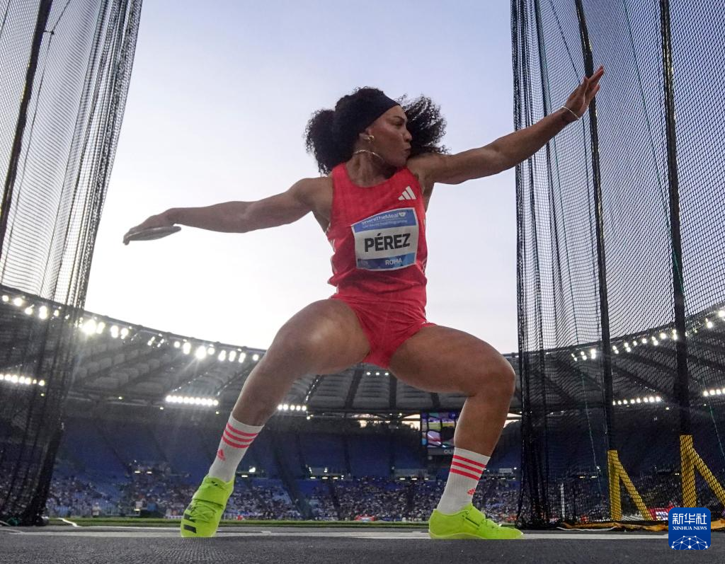 6月6日,古巴选手佩雷兹在女子铁饼比赛中试投。她以66米63的成绩获得亚军。
