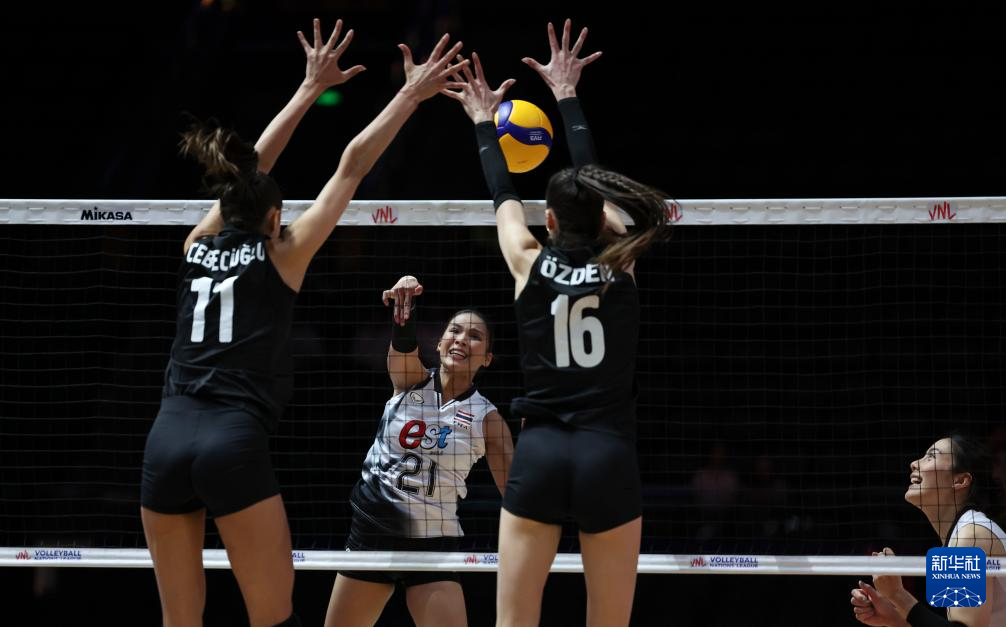 当日,在北京举行的2025年世界女排联赛(中国北京站)中,土耳其队3比0战胜泰国队。