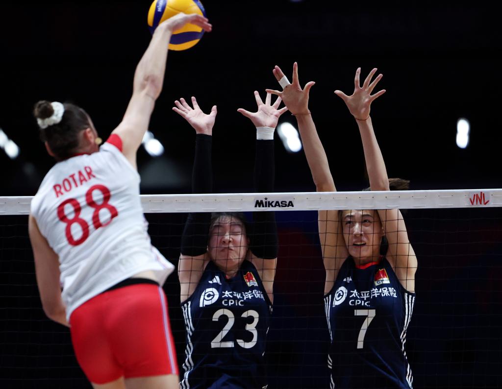 新华社北京6月7日电(记者王镜宇、李春宇)在7日晚进行的2025世界女排联赛(中国北京站)比赛中,中国女排以3:0横扫法国队,取得在本站比赛的第二场胜利。
