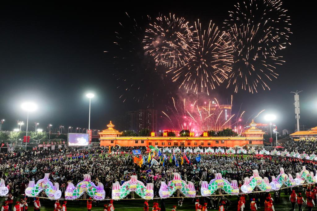 2025年1月4日,人们在贵州榕江县举办的“村超村晚”活动中表演非遗节目“多耶”(无人机照片)。新华社记者 杨文斌 摄