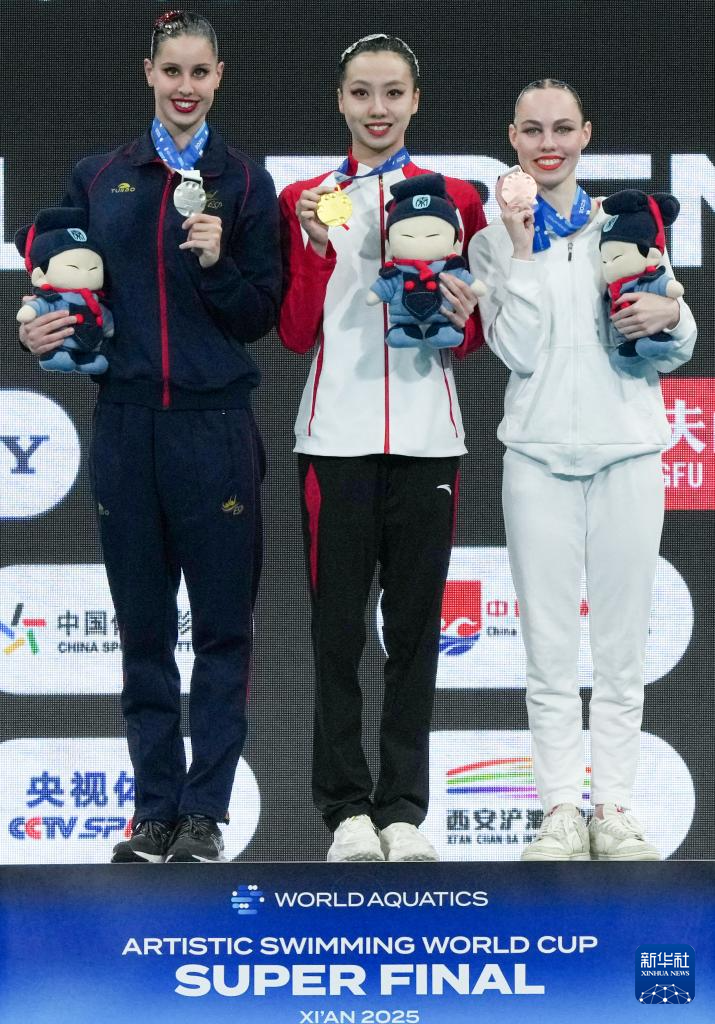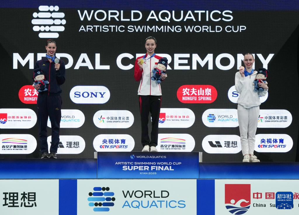 当日,2025年世界泳联花样游泳世界杯总决赛女子单人技术自选决赛在西安奥体中心游泳跳水馆举行。