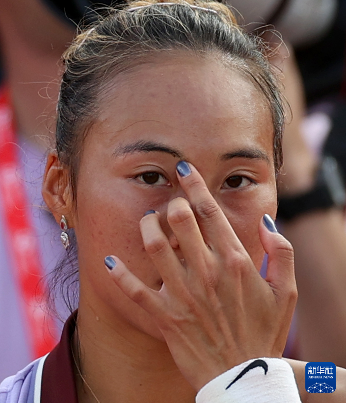 6月12日,郑钦文在比赛间隙。