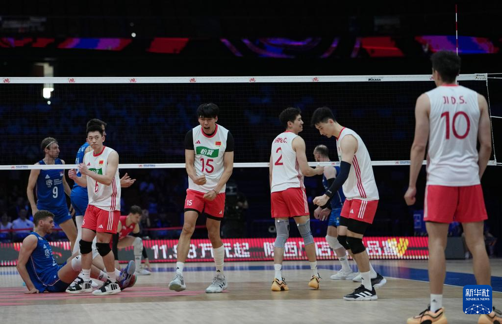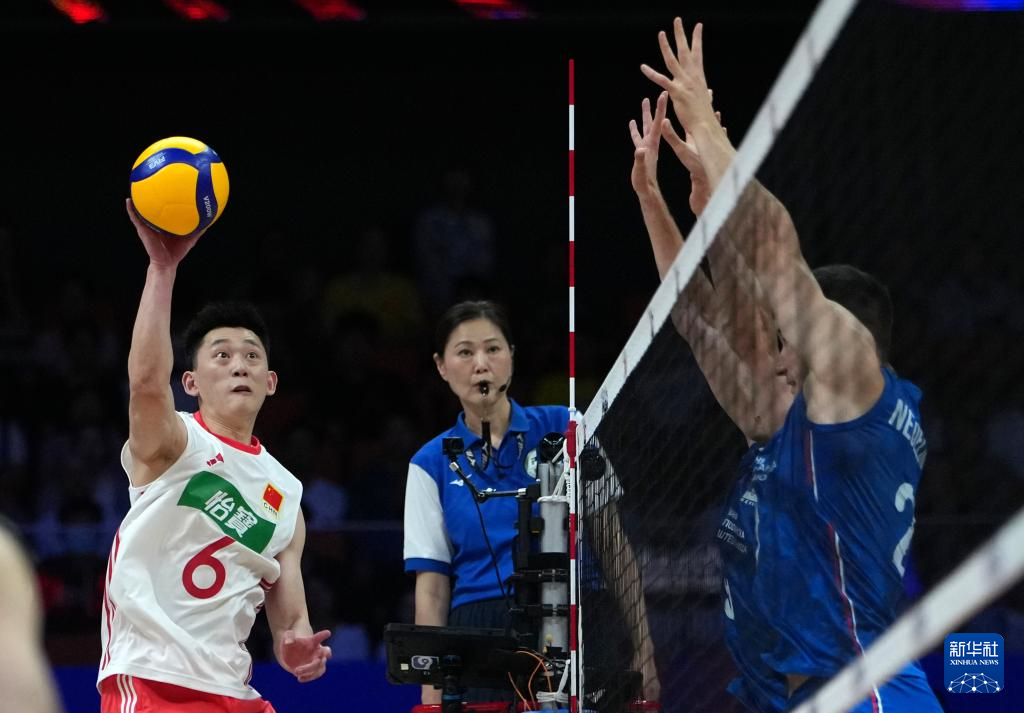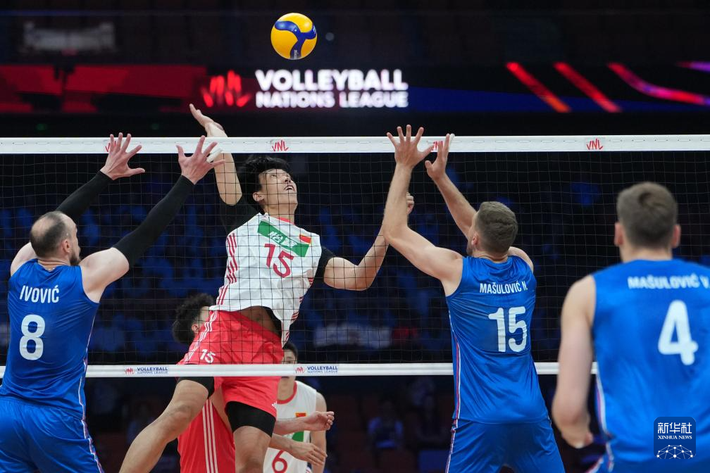 当日,在西安举行的2025世界男排联赛(中国西安站)小组赛中,中国队3比0战胜塞尔维亚队。