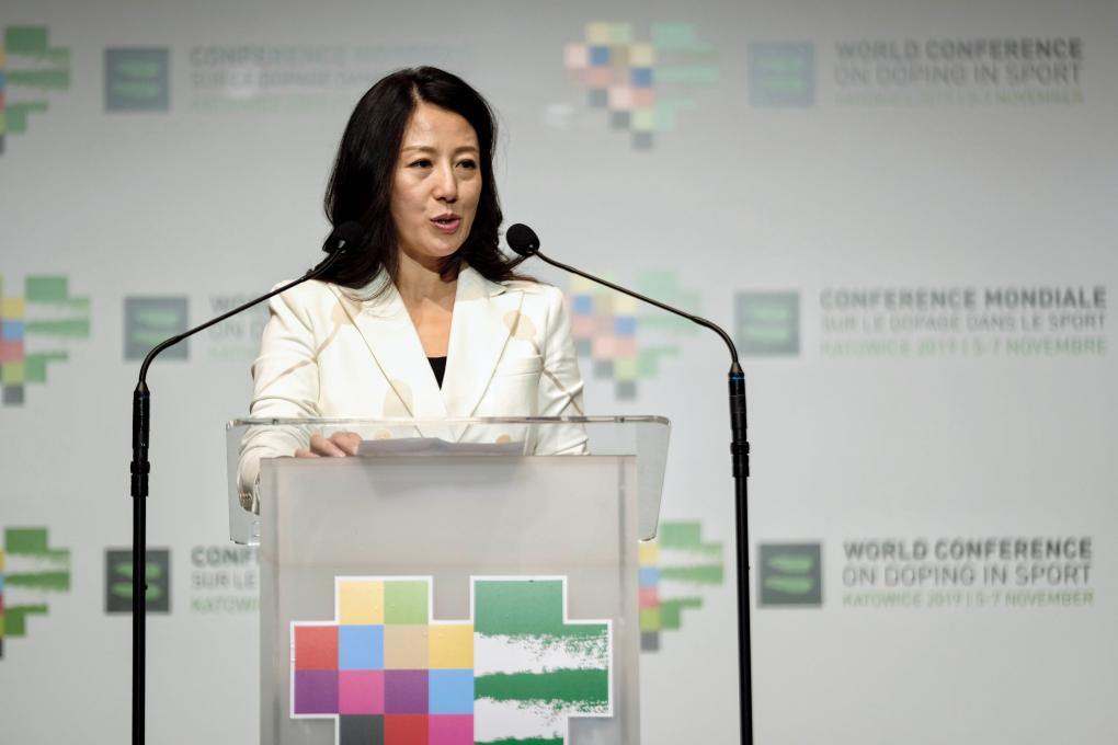 资料图:杨扬在第五届世界反兴奋剂大会闭幕式上。新华社记者 周楠 摄