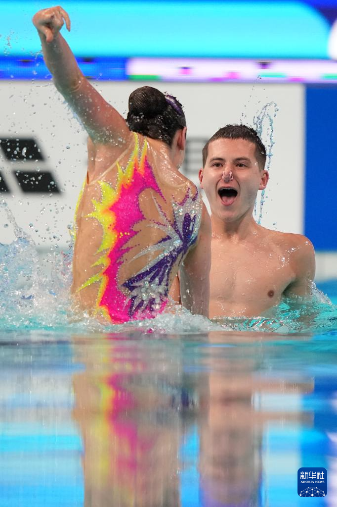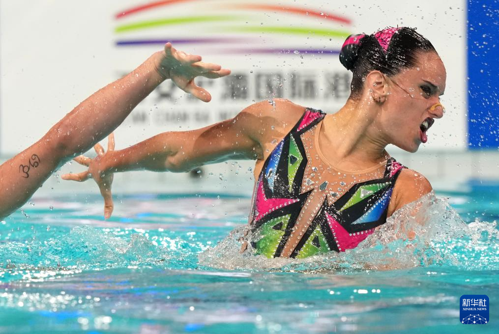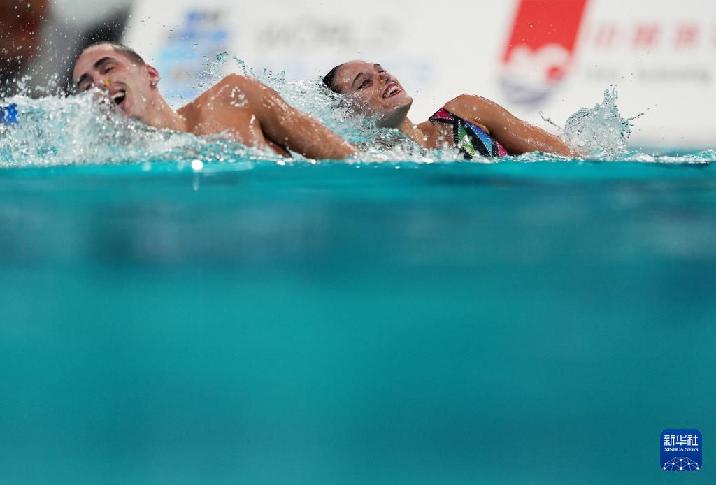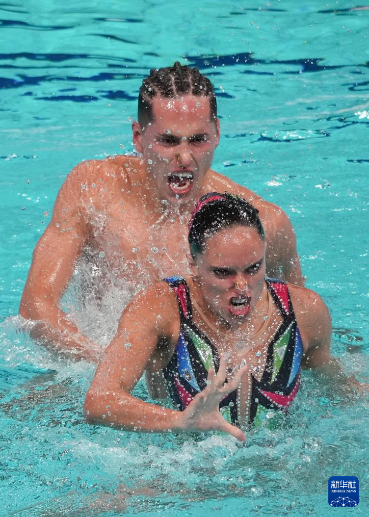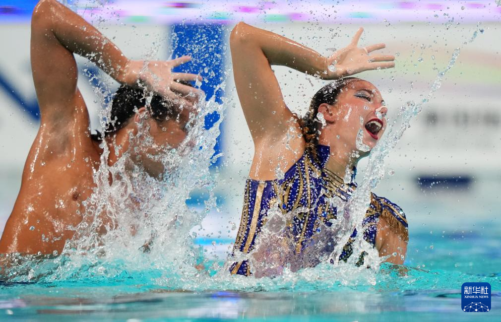当日,2025年花样游泳世界杯总决赛混合双人技术自选决赛在西安奥体中心游泳跳水馆举行。