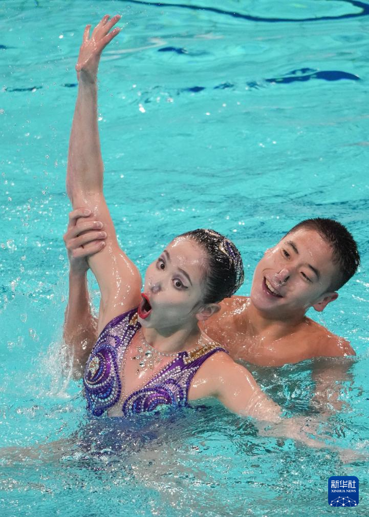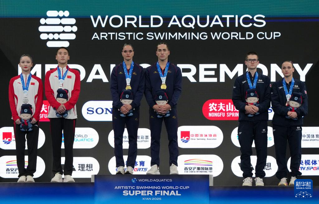 当然,在西安举行的2025年花样游泳世界杯总决赛混合双人技术自选决赛中,中国组合郭牧也/郭思彤获得亚军。