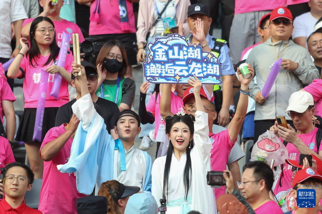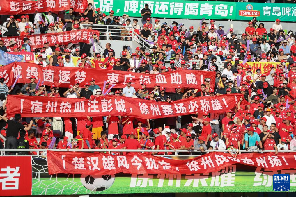 6月15日,来自徐州周边城市的球迷们在现场观赛。