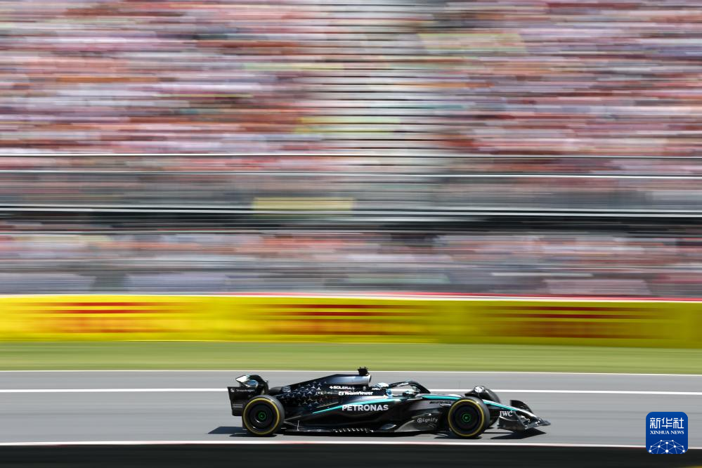 6月15日,梅赛德斯车队英国车手拉塞尔驾驶赛车在比赛中。最终,他获得冠军。