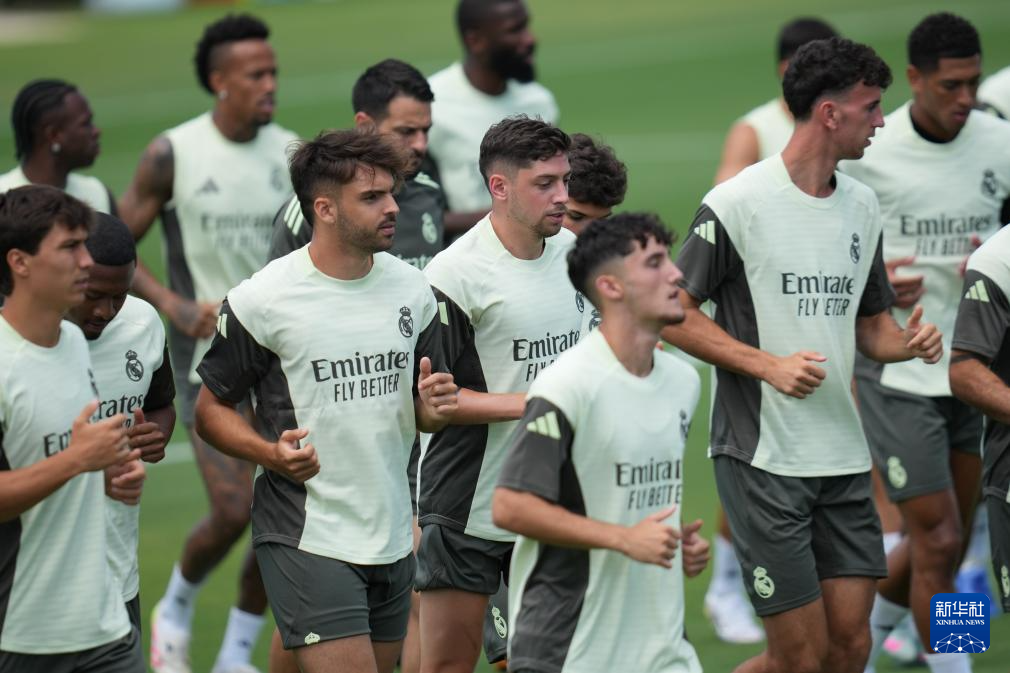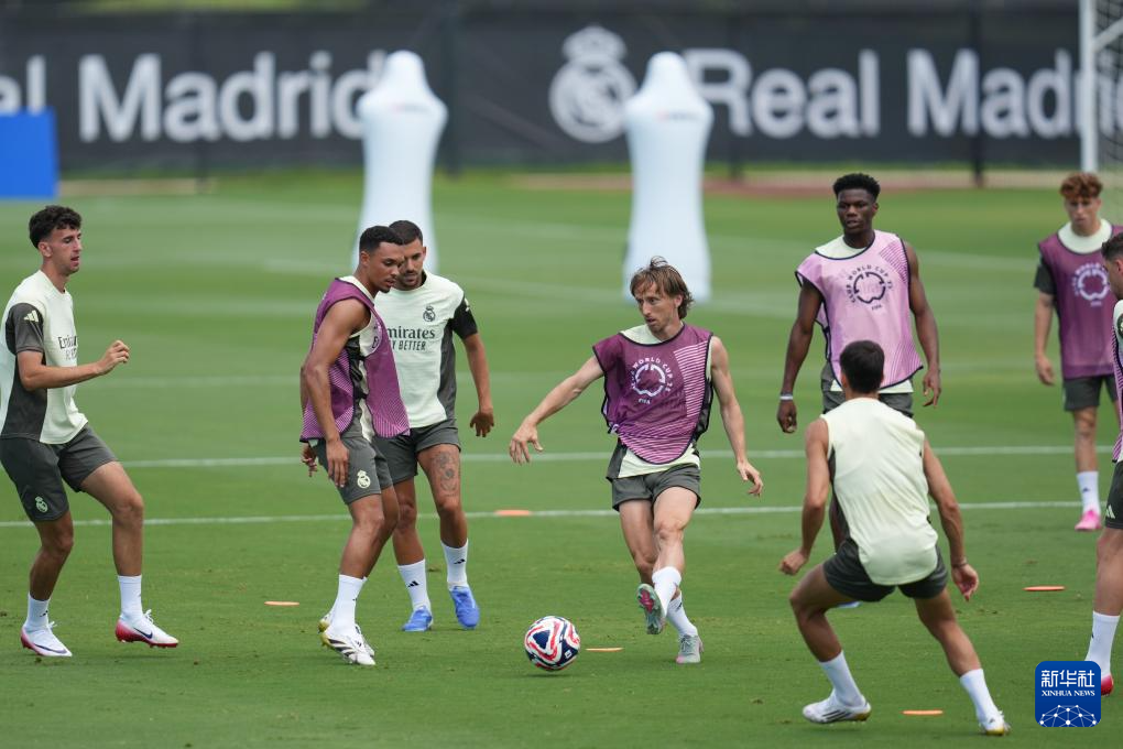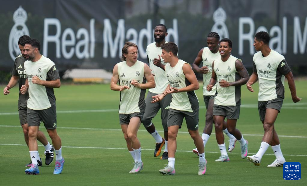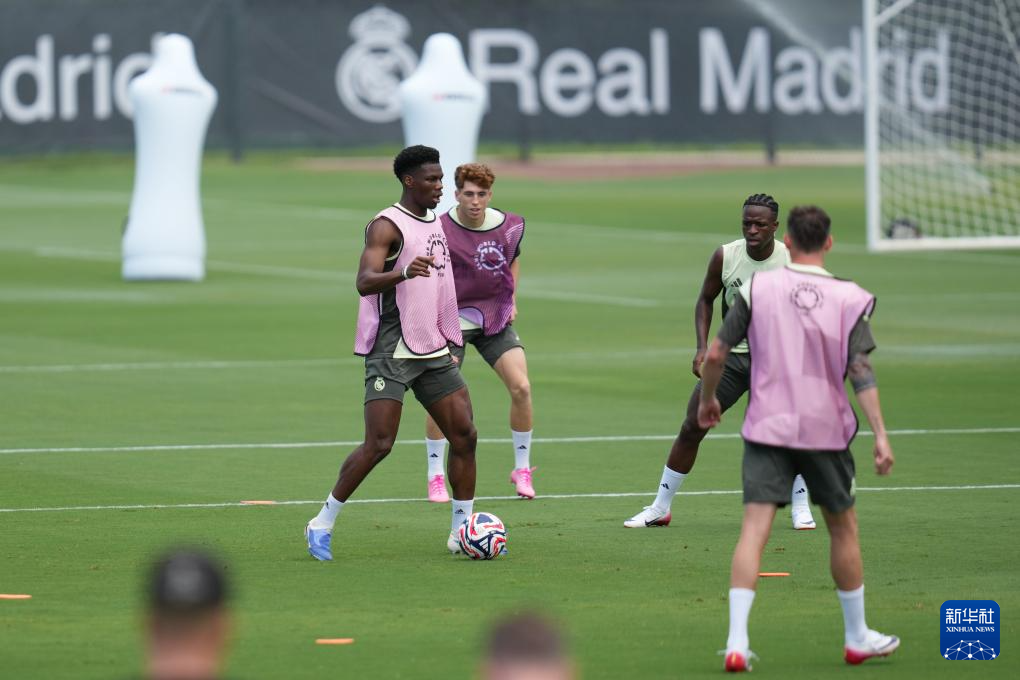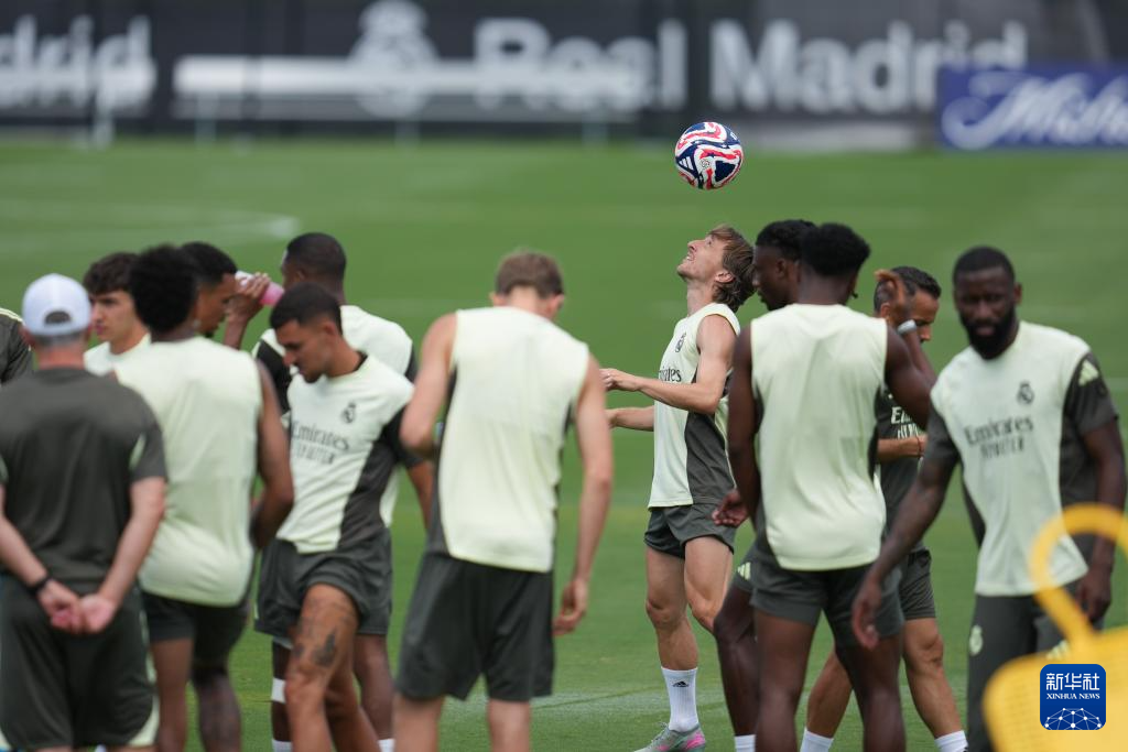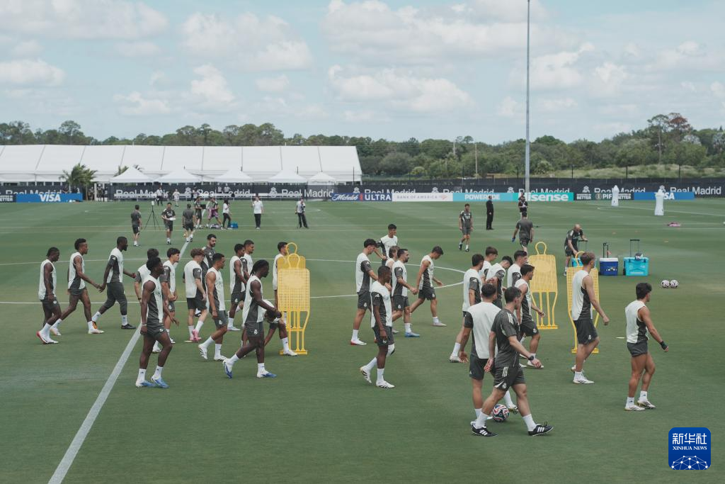 当日,在美国迈阿密参加2025年国际足联俱乐部世界杯(世俱杯)的西班牙皇家马德里队在驻地进行媒体开放活动及赛前训练,备战次日对阵沙特利雅得新月队的H组首场小组赛。