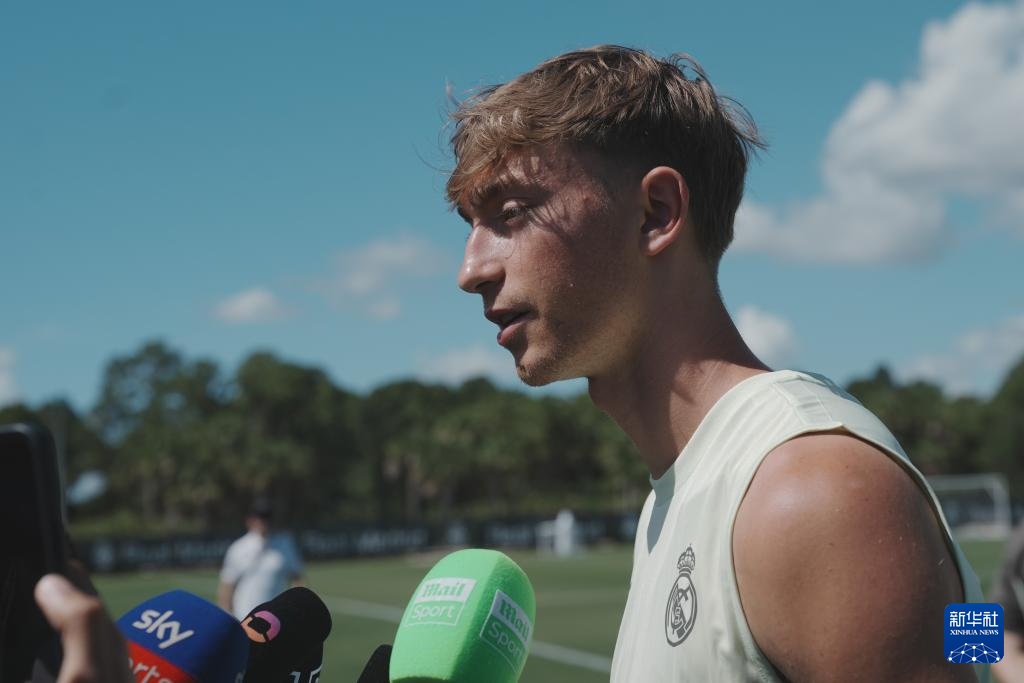 6月17日,皇家马德里队球员迪亚斯在训练前接受媒体采访。