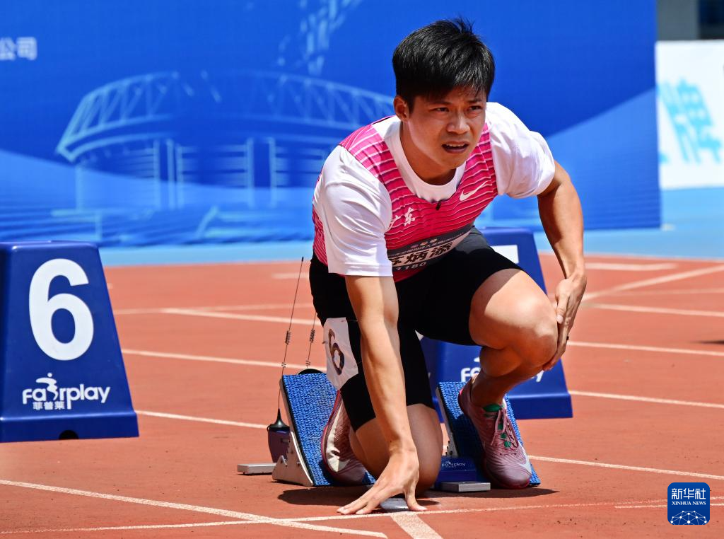 6月18日,广东队选手苏炳添在男子100米预赛前。新华社记者 李紫恒 摄